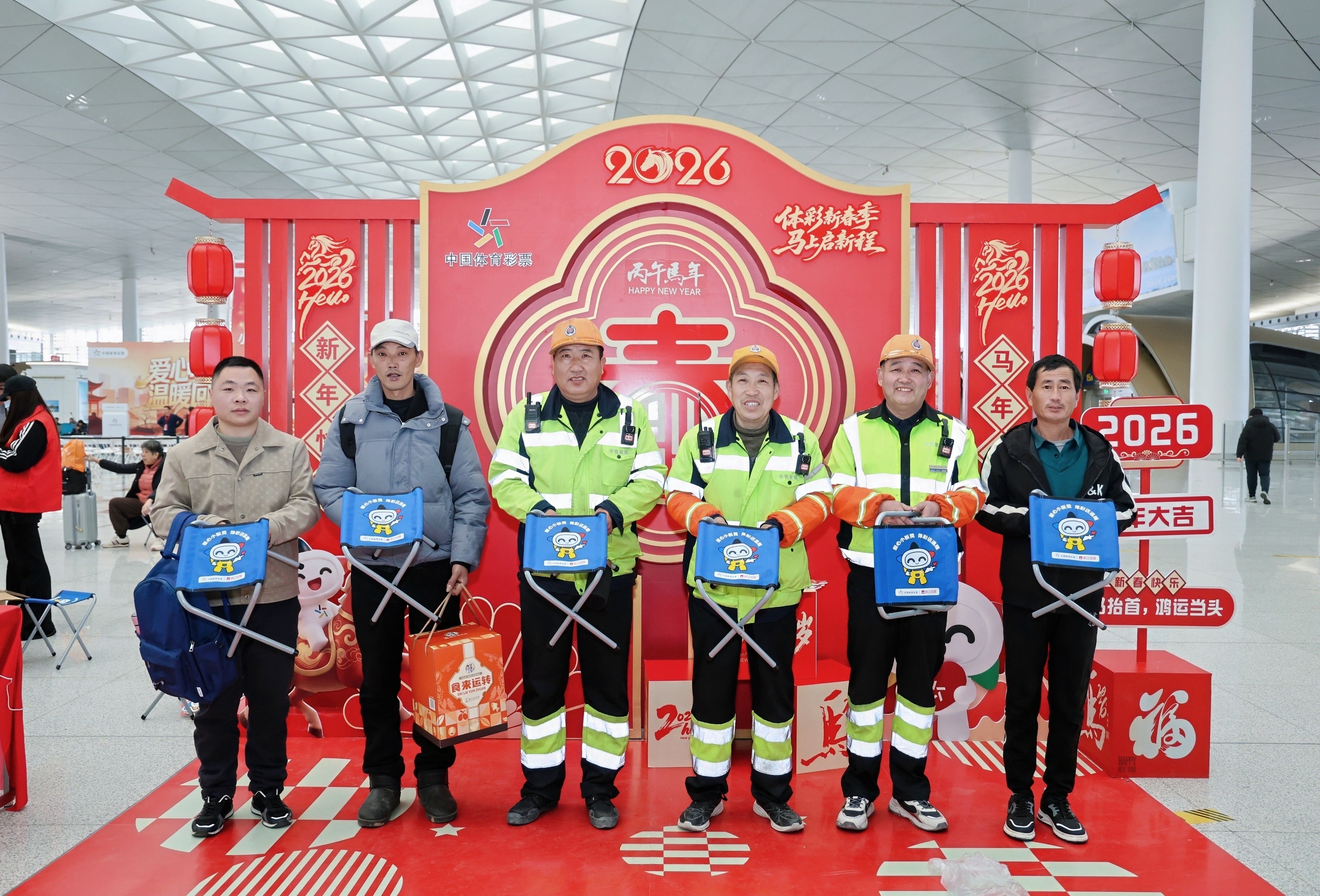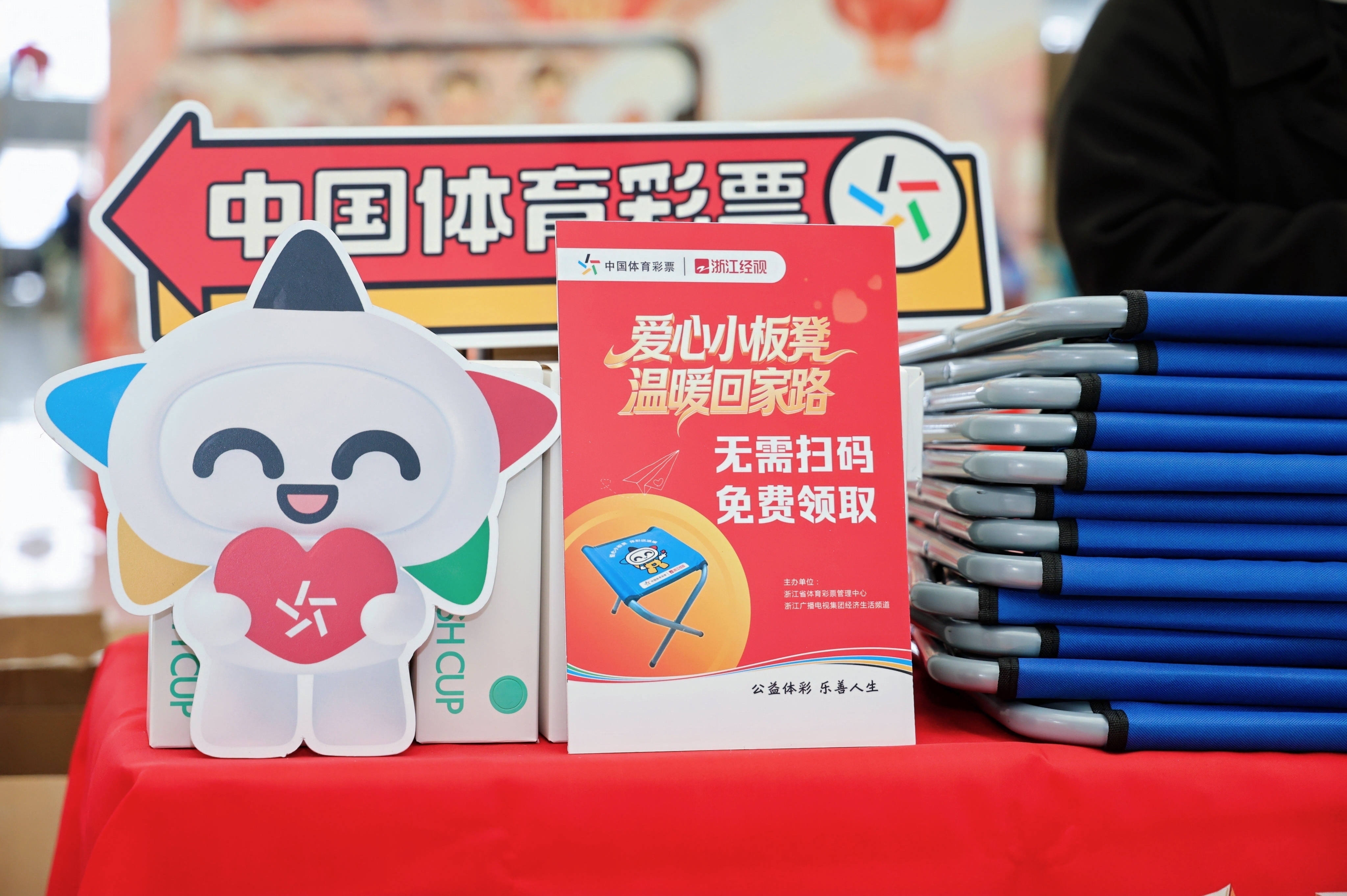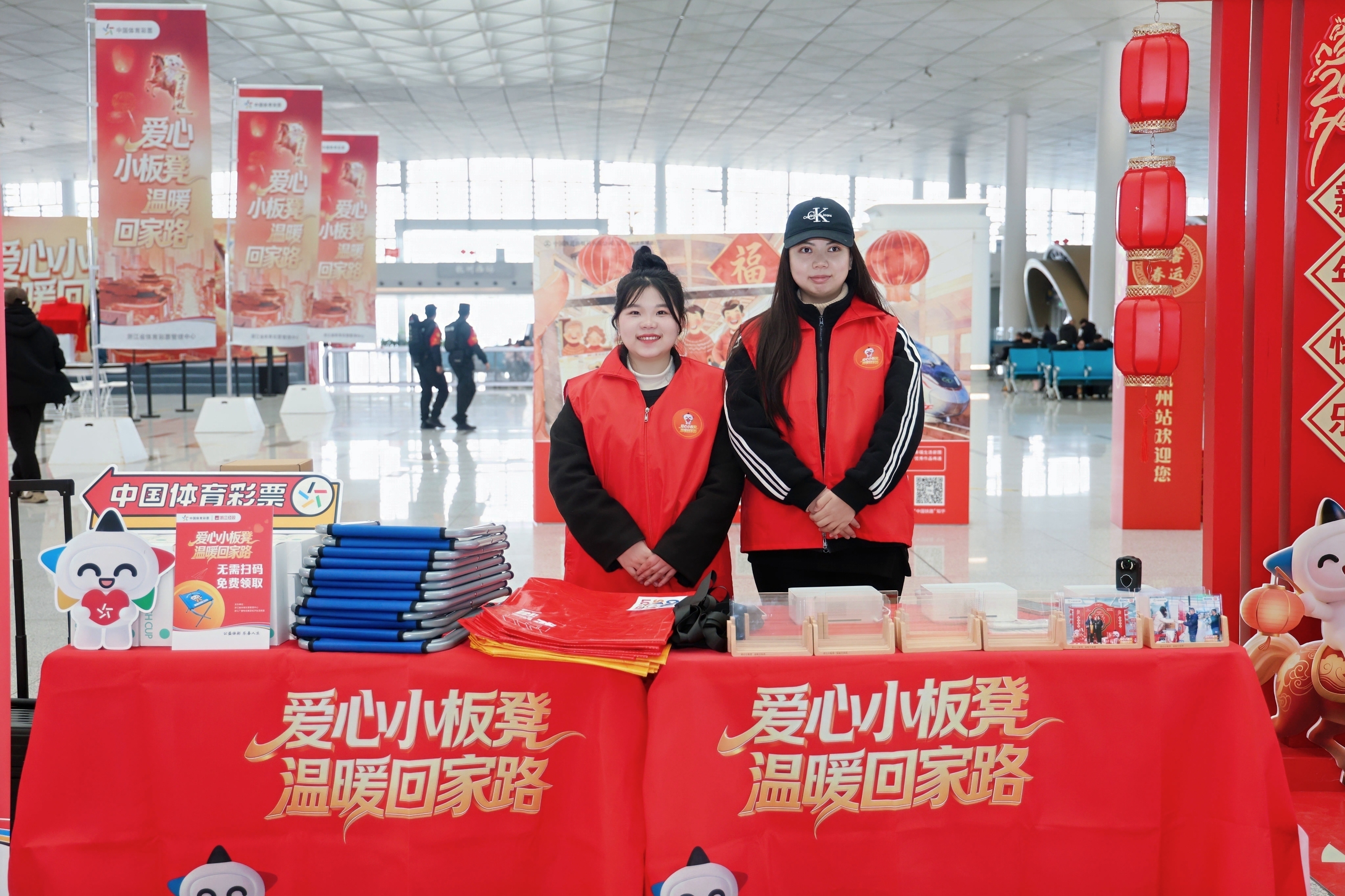 2月9日,2026年浙江体彩“爱心小板凳 温暖回家路”公益活动暨“浙里烟火气”即开型体育彩票首发仪式,在杭州西站温暖启动。
